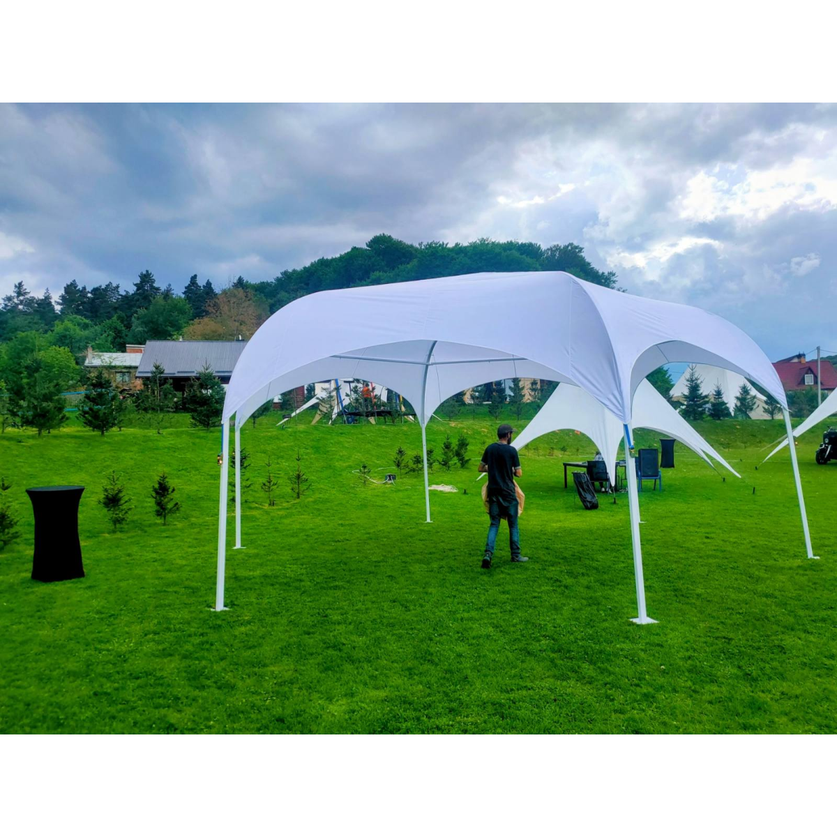 Ці намети вирізняються привабливим зовнішнім виглядом, просторим інтер’єром без внутрішніх опорних стовпів і простотою монтажу/демонтажу, що робить їх оптимальними для мобільного використання на заходах. Вони також характеризуються компактністю під час транспортування, а широка палітра кольорів дає можливість обрати рішення, що відповідає стилю вашого заходу.